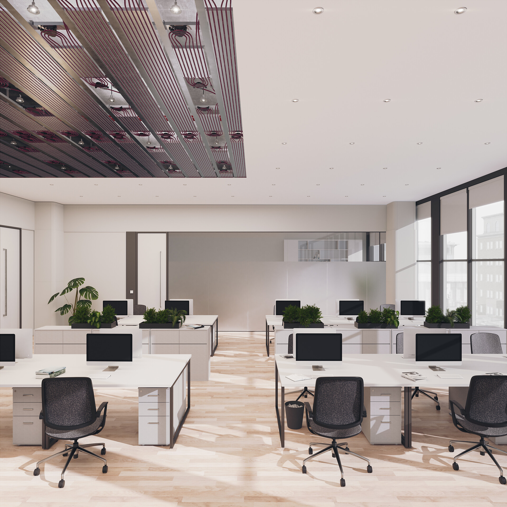Das Kontaktdeckensystem RAUTHERM NEO Contact von REHAU eignet sich sowohl zum Kühlen als auch zum Heizen und überzeugt mit einer hohen Kühlleistung von bis zu 75 W/m². In nahezu allen Gebäudetypen bietet das System eine effiziente Lösung für angenehme Raumtemperaturen ohne Zugluft.